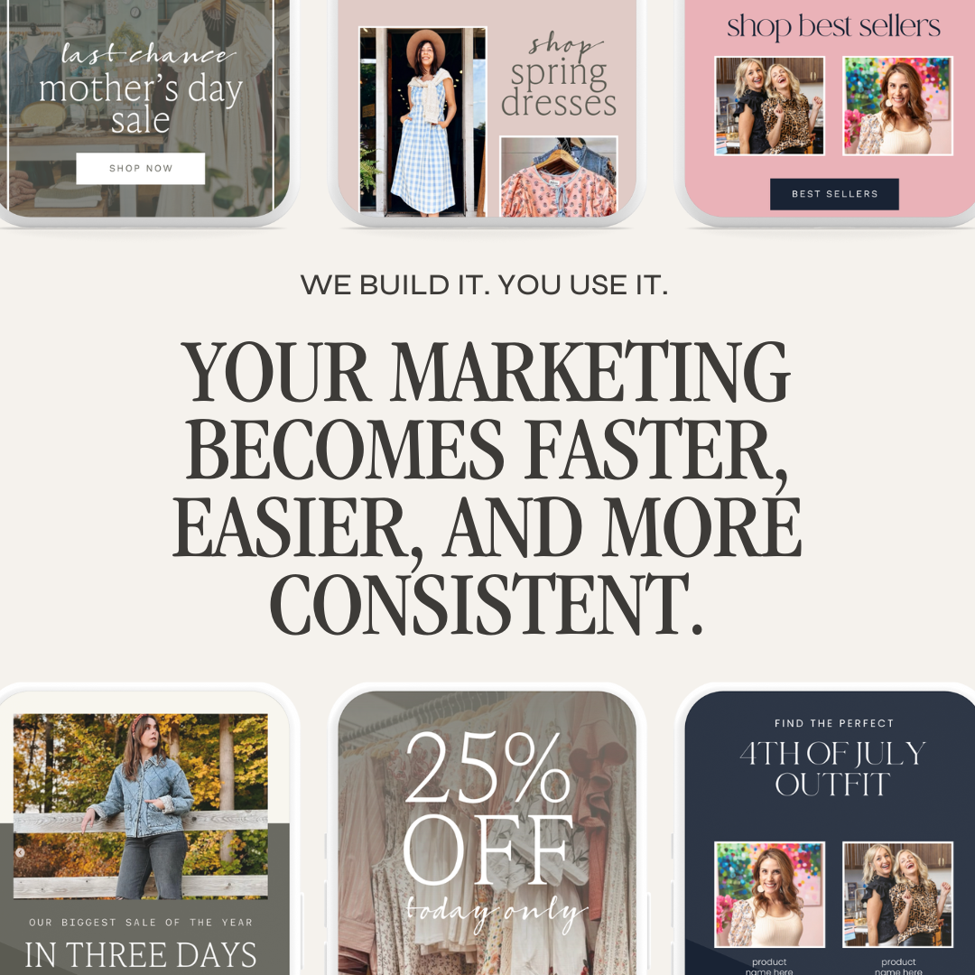 Our templates are created based on your existing brand guidelines and retail marketing best practices. This is a "deliver based on your brand" model, not a collaborative design process with revision rounds. We're implementing YOUR brand into strategic templates—not creating new brand aesthetics. If your brand guidelines are clear, the templates will match your brand perfectly.