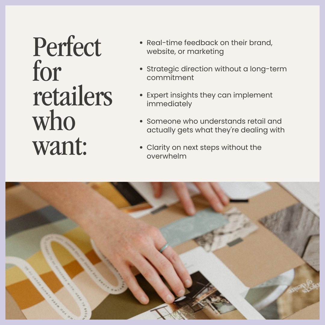 Think of this as your on-demand expert session — no long-term commitment, no waiting for project availability, just 60 minutes of focused strategy and real-time problem-solving for your retail business.
