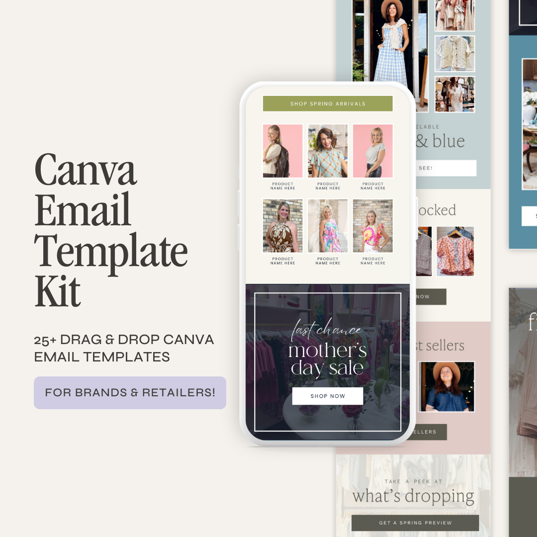 I primarily design and strategize for Klaviyo, so the layouts and structure are built with ecommerce best practices in mind. That said, these templates are designed in Canva and can be used with any email service provider that allows you to upload or build emails using images and text blocks.